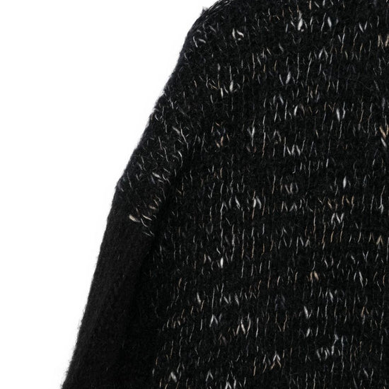 Black, mohair-wool-cotton blend, v-neck, button fastening, long sleeves. wool and cotton blend cardigan
