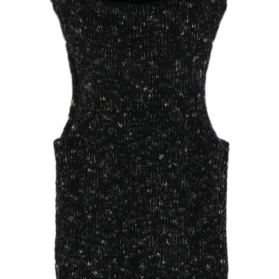 Black, wool-mohair-cotton blend, sleeveless design. wool turtle-neck top