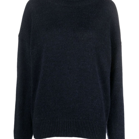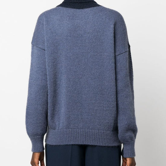 Two-tone roll-neck jumper from alysi featuring midnight blue, powder blue, knitted construction, two-tone design, roll neck, long sleeves and ribbed cuffs and hem. mix tricot mohair wool turtleneck sweater size and fit - this piece fits true to size. we recommend you get your regular size. model is 1,75m / 5ft 8in wearing size s