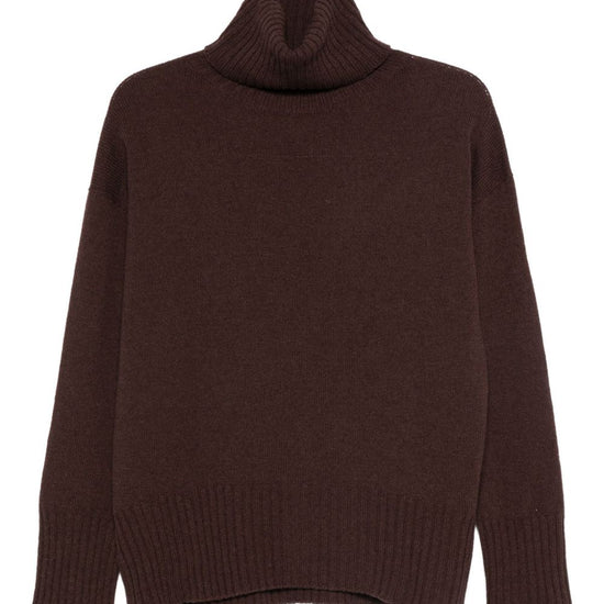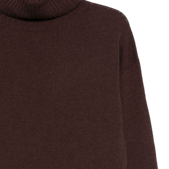 Brown, merino, turtleneck, ribbed hem and cuffs. wool turtle-neck sweater