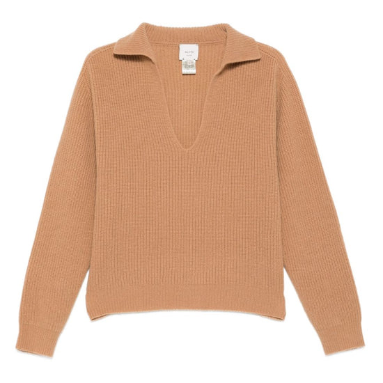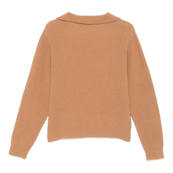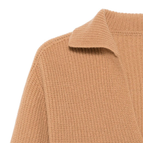 Camel, ribbed texture, polo neck, long sleeves, wool. wool polo sweater