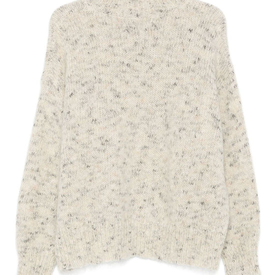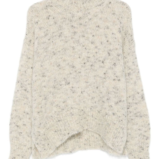 Off-white, high neck, speckled pattern, long sleeves, ribbed cuffs. turtle-neck sweater