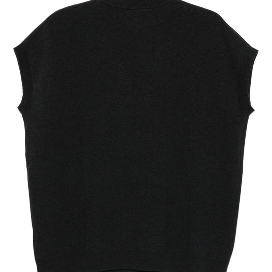 Black, mock neck, cap sleeves, straight hem. cotton blend vest
