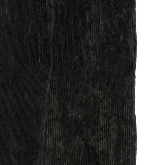 Wide leg, contrasting cream stitching. waist with decorative buttons and elastic waistband at the back, button and hidden zip closure, back welt pocket. wide-leg velvet trousers