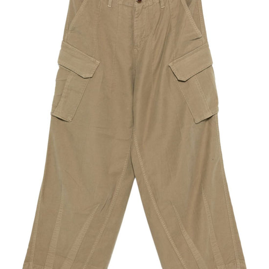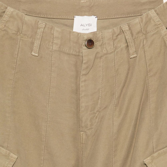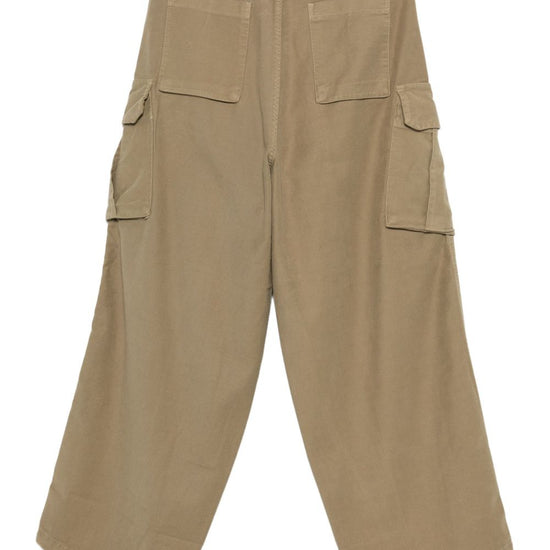 Green two side cargo pockets button fly fastening belt loops cargo trousers
