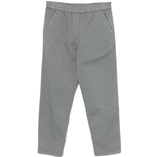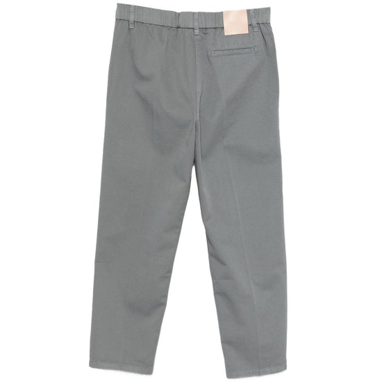 Grey elasticated waistband belt loops side diagonal pockets back welt pocket