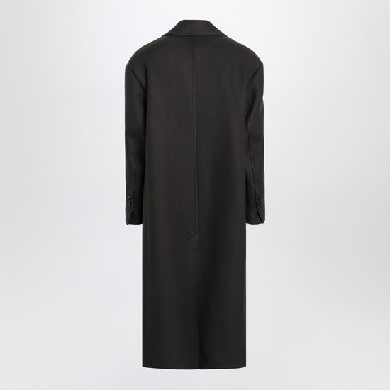 Double-breasted coat by ami paris in virgin wool anthracite grey, characterized by pointed lapels, front buttoning, long sleeves with buttoned cuffs, a welt pocket on the chest, two side pockets, and a back vent. size and fit - model wears size 46 fr model measurements: height: 187 cm chest: 102 cm waist: 76 cm hips: 92 cm