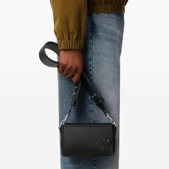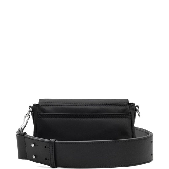 Black adjustable shoulder strap logo patch to the front main compartment top zip fastening marcel nylon shoulder bag size and fit - depth: 5.0 centimetres. height: 10.5 centimetres. width: 18.5 centimetres.