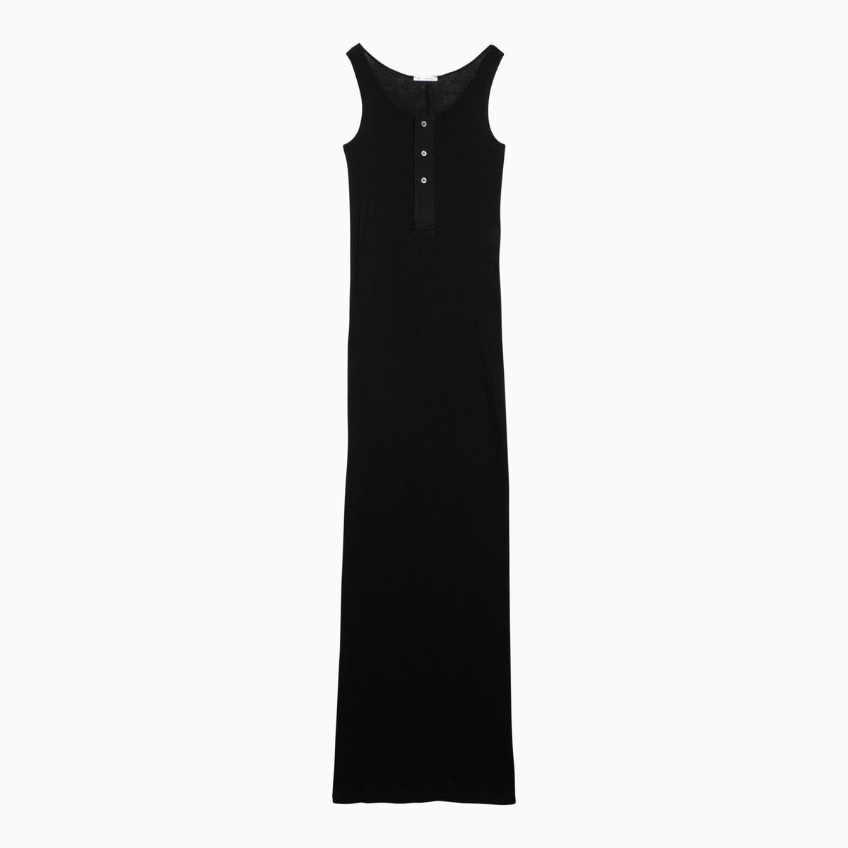 Black cotton sleeveless crew-neck long dress from ami paris featuring a ribbed design, front buttons and a slim fit. size and fit - model wears size s model measurements: height: 179 cm chest: 82 cm waist: 65 cm hips: 90 cm