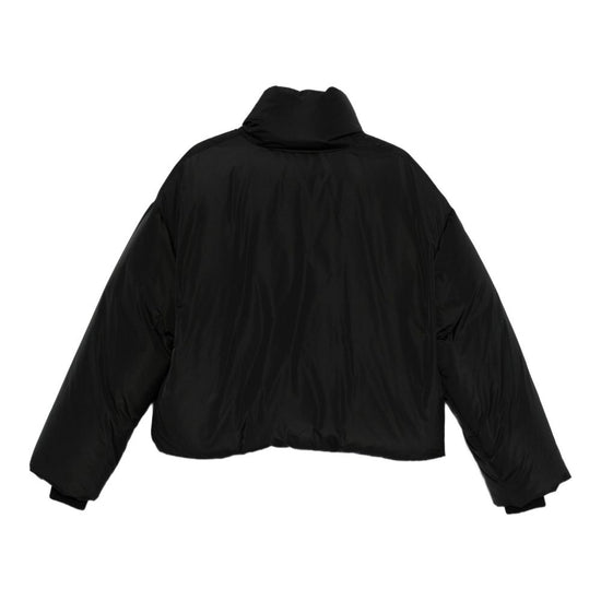 Black high neck puffer design long sleeves short down jacket size and fit - this piece fits true to size. we recommend you get your regular size. model is 1,75m / 5ft 8in wearing size s