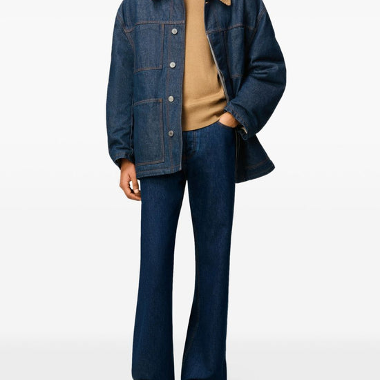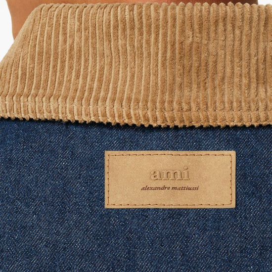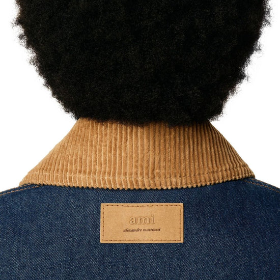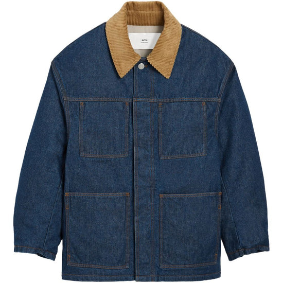 Blue cotton corduroy collar button fastening patch pockets logo patch worker denim jacket size and fit - this piece fits true to size. we recommend you get your regular size. model is 1,84m / 6ft 1in wearing size m