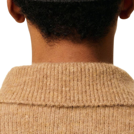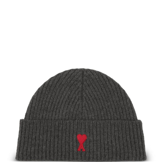 Heather grey wool ribbed knit oval crown embroidered logo turn-up brim slip-on style ami de coeur wool beanie