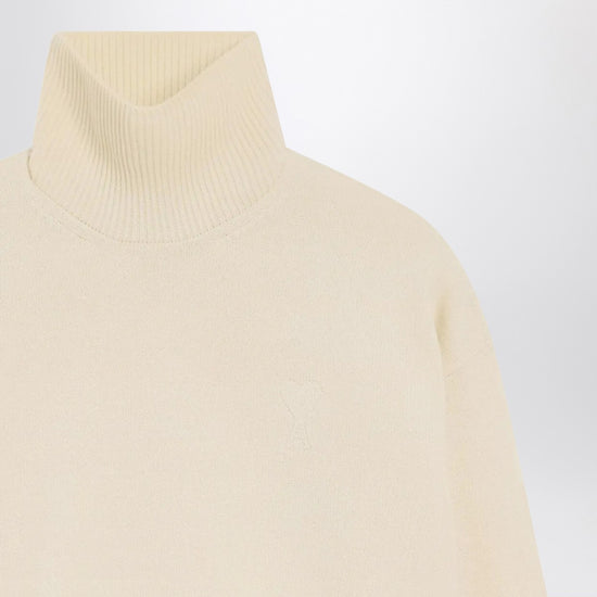 Ami paris turtleneck sweater in ivory wool and cashmere, featuring ami de coeur embroidery on the chest, long sleeves, ribbed collar, cuffs, and hem. size and fit - model wears size s model measurements: height: 178 cm chest: 89 cm waist: 62 cm hips: 88 cm