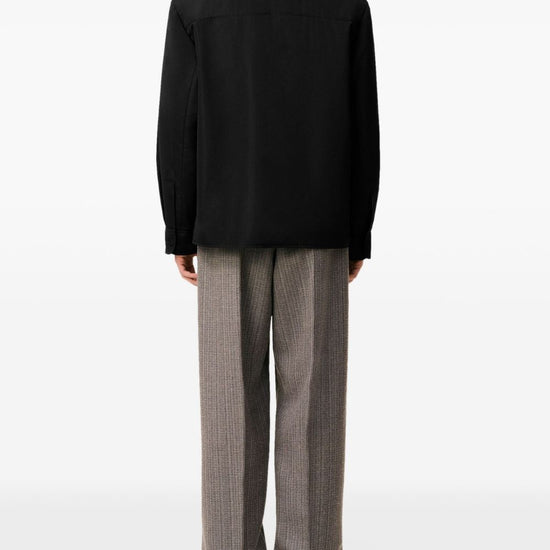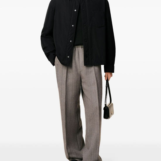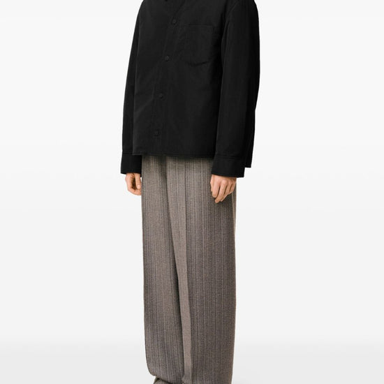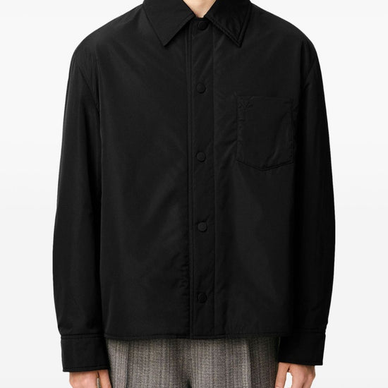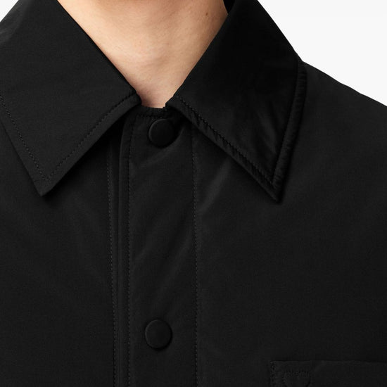 Black padded snap button closure chest pocket logo detail topstitching nylon overshirt size and fit - this piece fits true to size. we recommend you get your regular size. model is 1,84m / 6ft 1in wearing size m