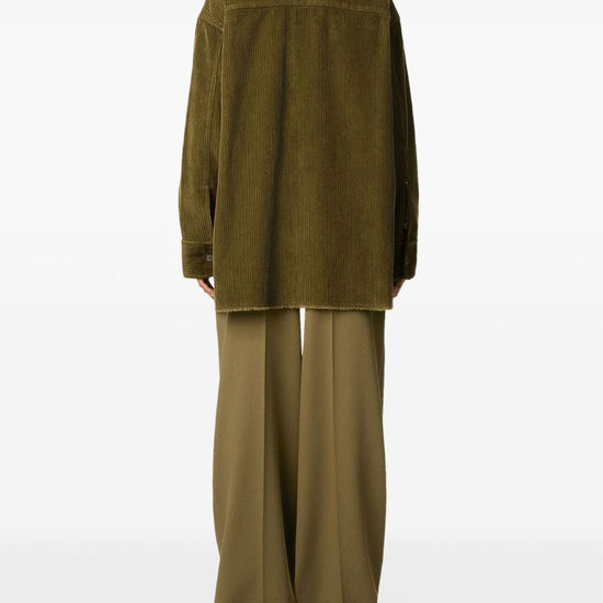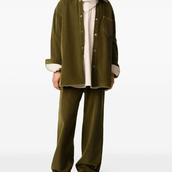 Olive green corduroy texture button fastening logo patch patch pocket cotton overshirt size and fit - this piece fits true to size. we recommend you get your regular size. model is 1,84m / 6ft 1in wearing size m