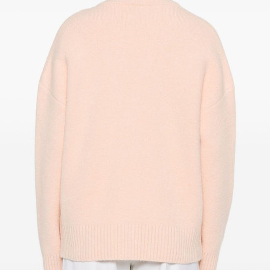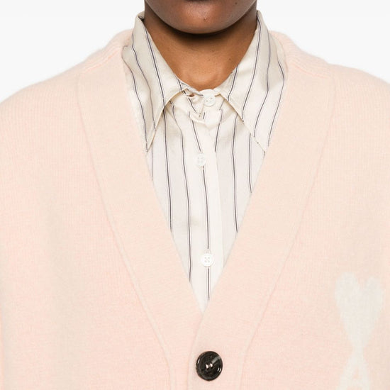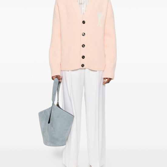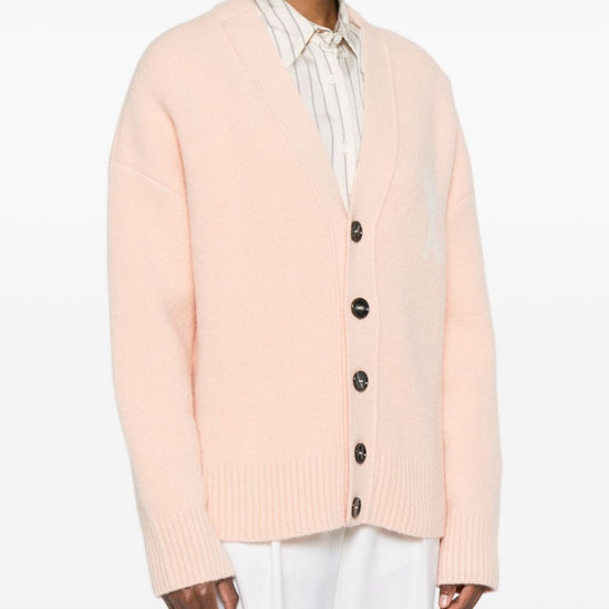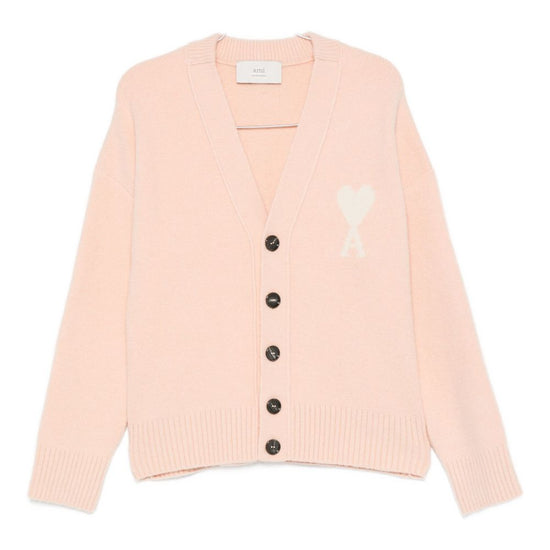 Pink button fastening heart motif v-neck long sleeves ribbed hem ami de coeur wool cardigan size and fit - this piece fits true to size. we recommend you get your regular size. model is 1,75m / 5ft 8in wearing size s