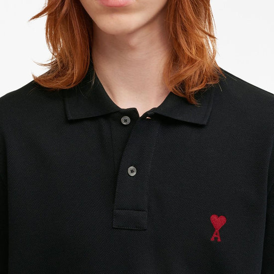 Black organic cotton piquã© weave embroidered logo at the chest polo collar front button placket short sleeves straight hem when buying this unisex item, keep in mind that it is graded in standard men's sizing. ami de coeur cotton polo shirt size and fit - this piece fits true to size. we recommend you get your regular size. model is 1,84m / 6ft 1in wearing size m