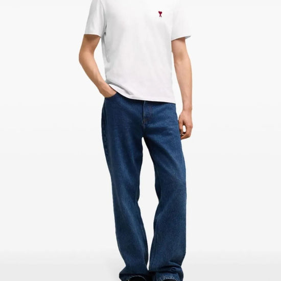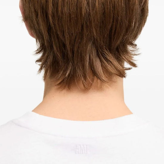 White organic cotton signature ami de coeur monogram motif crew neck short sleeves straight hem when buying this unisex item, keep in mind that it is graded in standard men's sizing. ami de coeur cotton t-shirt size and fit - this piece fits true to size. we recommend you get your regular size. model is 1,84m / 6ft 1in wearing size m