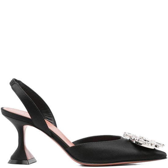 Black slingback strap pointed toe embellished detail sculpted heel begum satin slingback pumps size and fit - .
