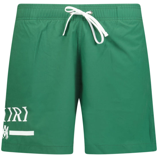 Amiri Ma Bar White Logo Drawstring Swim Shorts Military Green