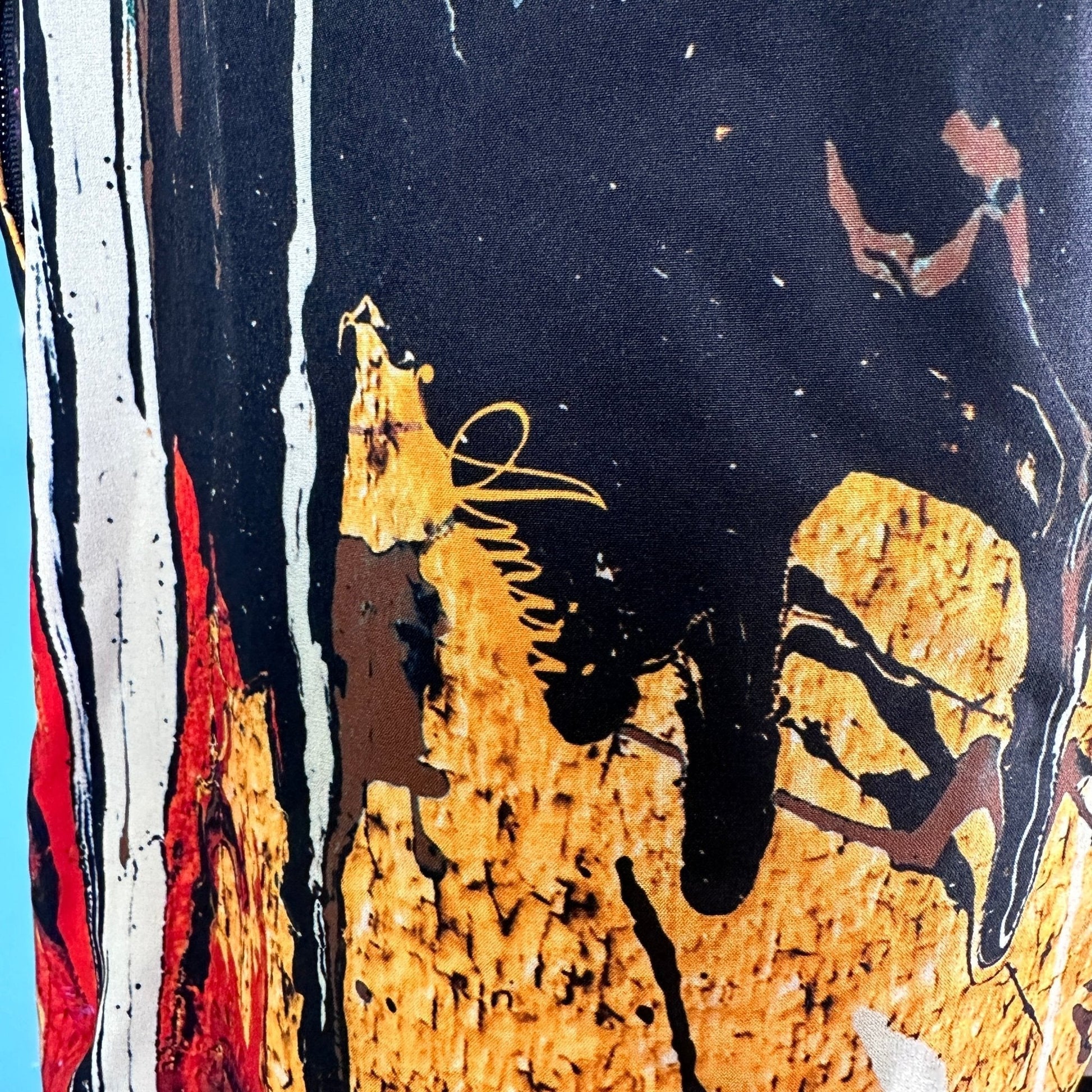 the amiri paint drip drawstring swim shorts in yellow combine vibrant style with functional design. these swim shorts feature a colourful paint drip pattern, a logo leather patch at the back, and a logo print on the side. the elasticated waistband with drawstring ensures a comfortable fit, while the side zipped pockets and back flap pocket provide practical storage. made from poly spandex, these shorts are designed for both comfort and durability.