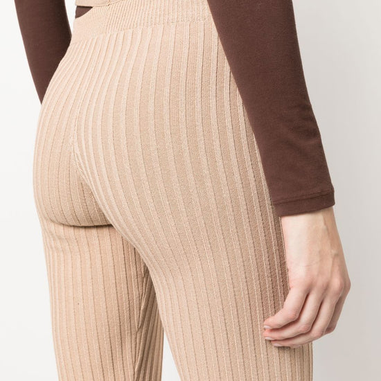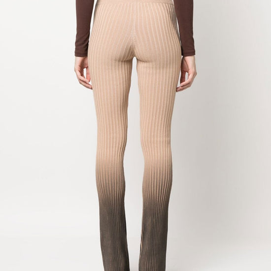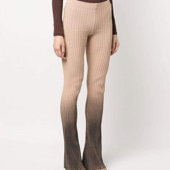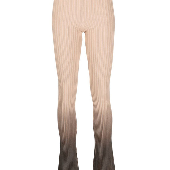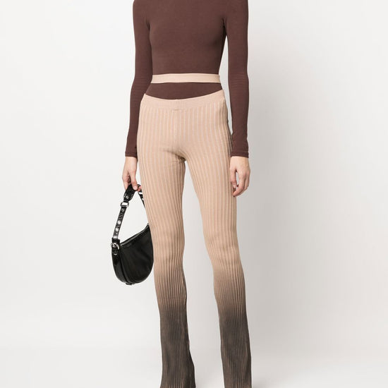 Ribbed flared trousers from andreadamo featuring brown, stretch-design, ombré effect, fine ribbed, high-waisted, cut-out detailing and flared. printed cut-out trousers size and fit - this piece fits true to size. we recommend you get your regular size. model is 1,75m / 5ft 8in wearing size s