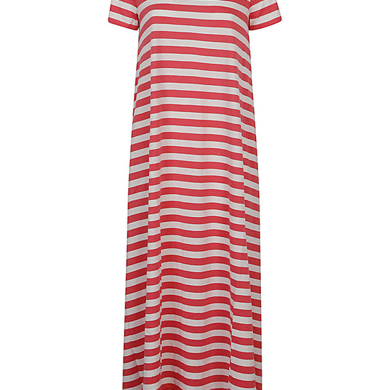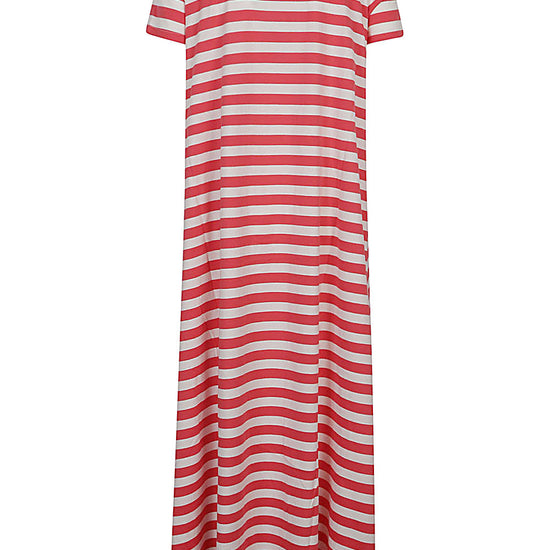 Long striped dress, short sleeves, crew neck and straight hem. striped cotton long dress size and fit - this piece fits true to size. we recommend you get your regular size. model is 1,75m / 5ft 8in wearing size s