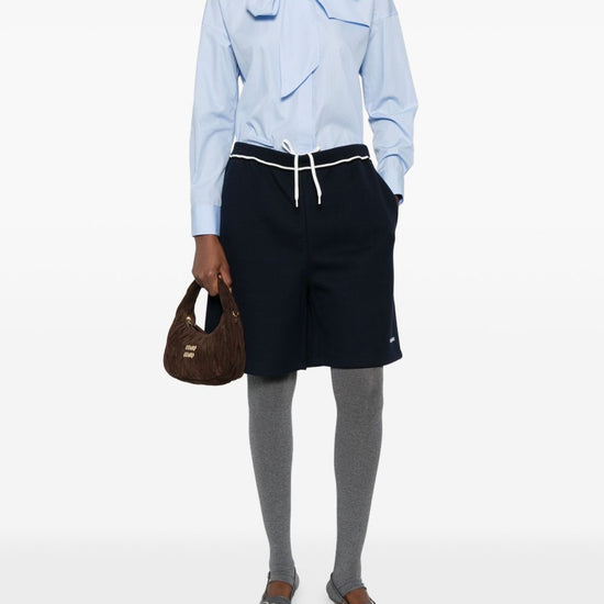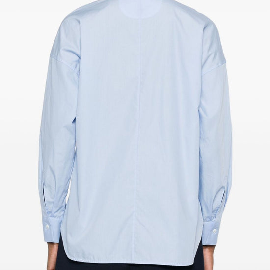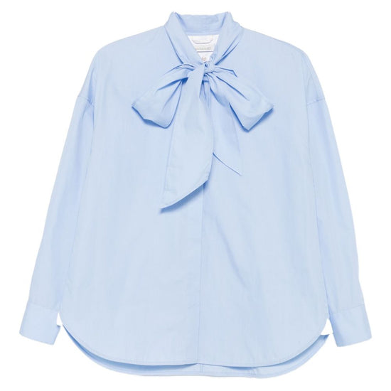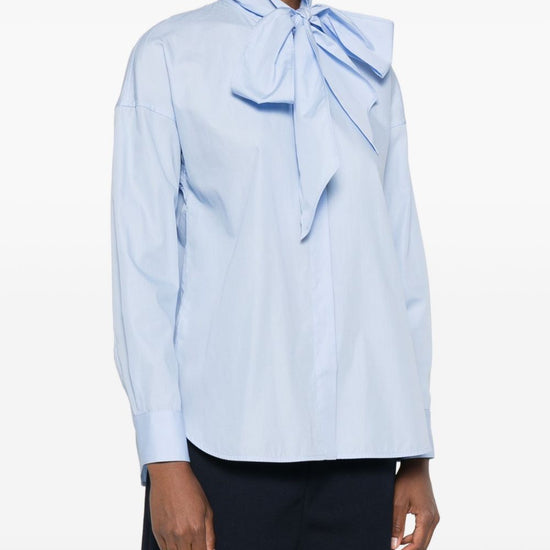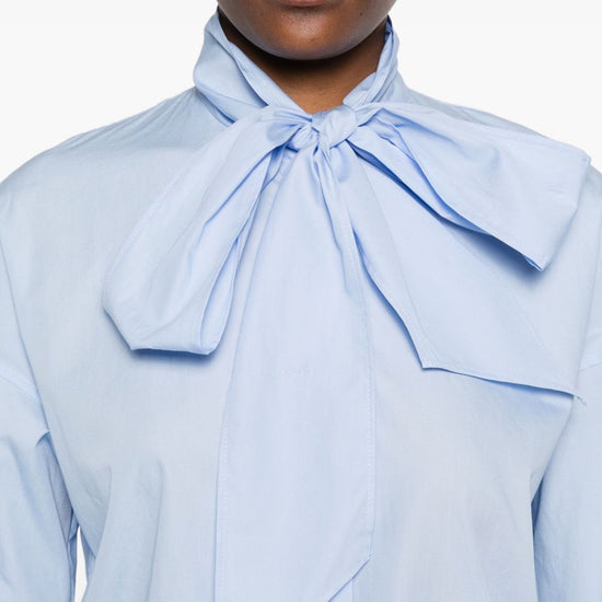 Light blue pussy bow long sleeves button fastening bow-tie shirt