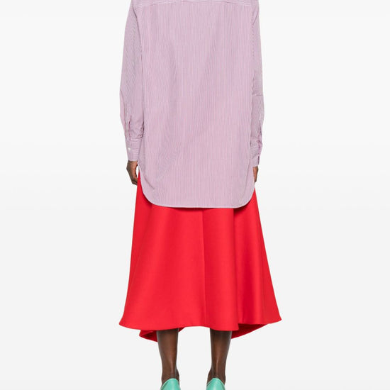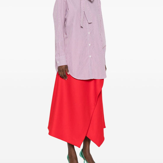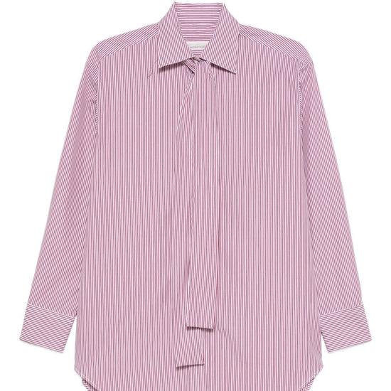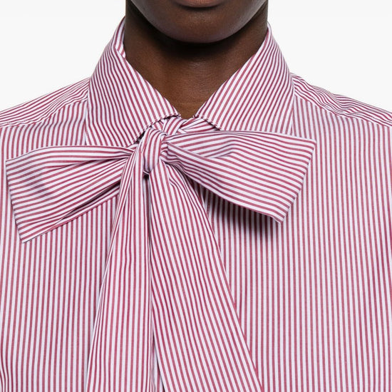 White striped tie detail buttoned cuffs long sleeves classic collar striped cotton shirt