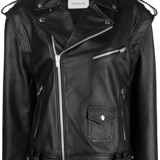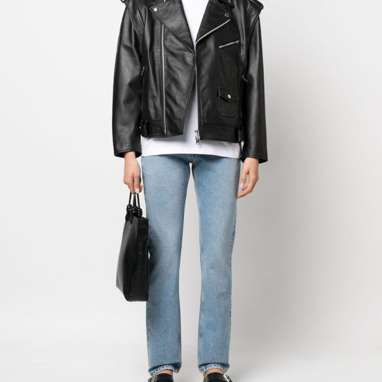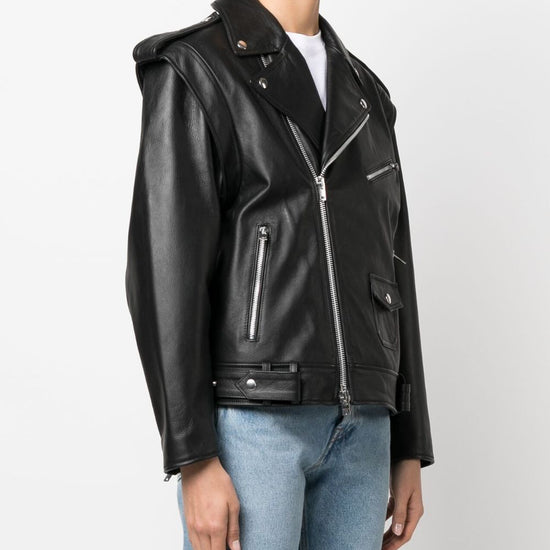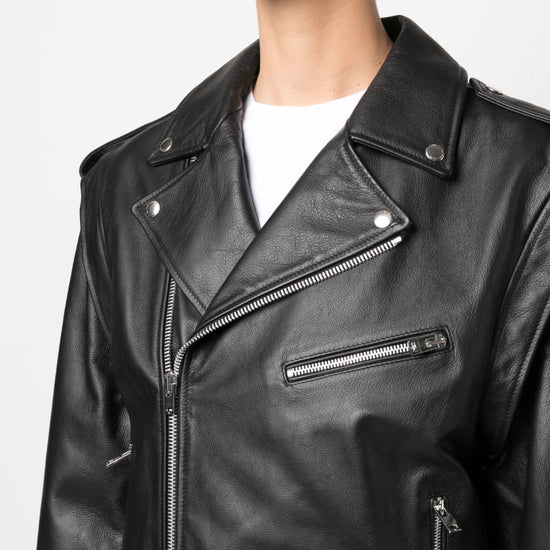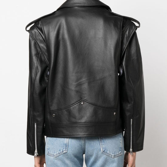 Black lambskin grained texture silver-tone hardware wide notch lapels off-centre front zip fastening long sleeves straight hem cuff zips zip-fastening chest pocket two side zip-fastening pockets coin pocket leather biker jacket size and fit - this piece fits true to size. we recommend you get your regular size. model is 1,75m / 5ft 8in wearing size 40 (it)