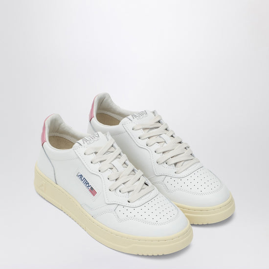 White leather trainer from autry featuring a rounded, perforated toe, heel on the back in a foam colour, a lace-up closure and a padded tongue.