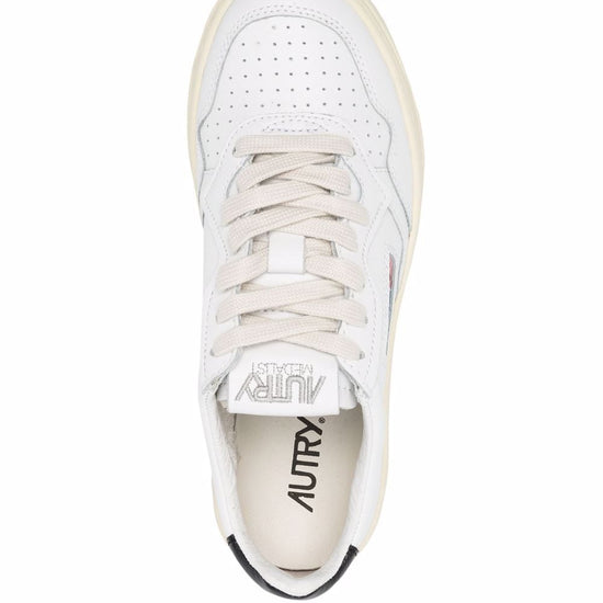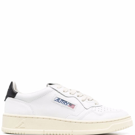 White front lace-up fastening round toe perforated toebox flat rubber sole medialist low sneakers