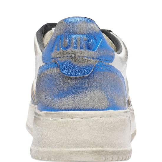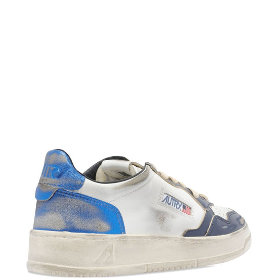 White leather upper distressed effect lace closure round toe rubber sole medialist low sneakers