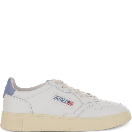 White perforated detailing leather upper blue heel tab lace-up fastening medialist low sneakers
