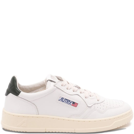 White leather upper off-white sole perforated detailing dark green heel panel lace-up fastening medialist low sneakers