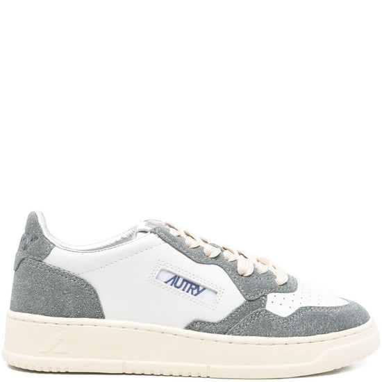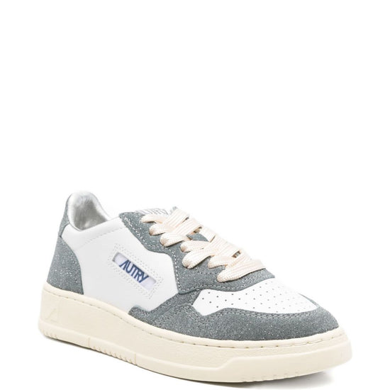 White leather suede panelling lace-up fastening flat sole round toe medialist low sneakers size and fit - heel 3,5 cm