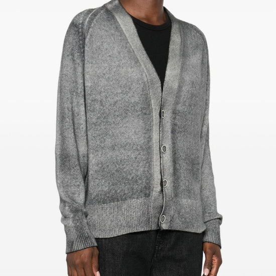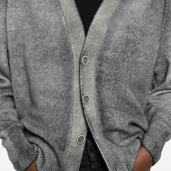 ribbed cuffs and hem wool and cashmere v-necked cardigan