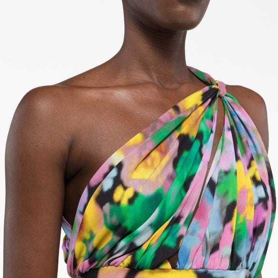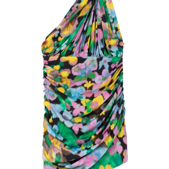 Ava floral-print one-shoulder minidress from az factory featuring black/multicolour, all-over floral print, draped detailing, asymmetric design, one-shoulder, side zip fastening and thigh-length. conscious: this item contains materials certified by the forest stewardship council (fsc) or the programme for the endorsement of forest certification (pefc), which ensure that the wood used comes from responsibly managed forests.. mini, monospalla, asimmetrico, drappeggiato one shoulder mini dress size and fit - this piece fits true to size. we recommend you get your regular size. model is 1,75m / 5ft 8in wearing size 36 (fr)