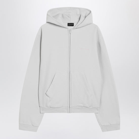 Balenciaga sweatshirt in off-white and candy pink brushed cotton featuring a hood without drawstrings, front zip closure, two front pockets, balenciaga back logo on the front and rear, long sleeves, and ribbed trims. size and fit - model wears size s model measurements: height: 178 cm chest: 83 cm waist: 63 cm hips: 91 cm