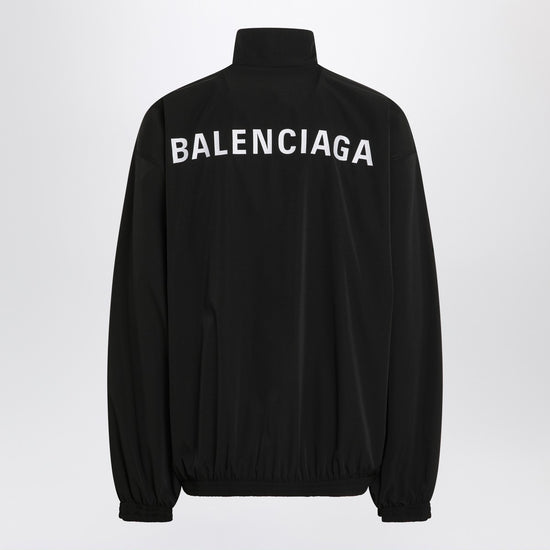 Balenciaga sweatshirt in black technical fabric, characterized by a front closure with double zip, long sleeves, raised collar, elasticized cuffs and hem, two side welt pockets, and contrasting embroidered logo lettering on the chest and back. size and fit - model wears size l model measurements: height: 187 cm chest: 102 cm waist: 76 cm hips: 92 cm