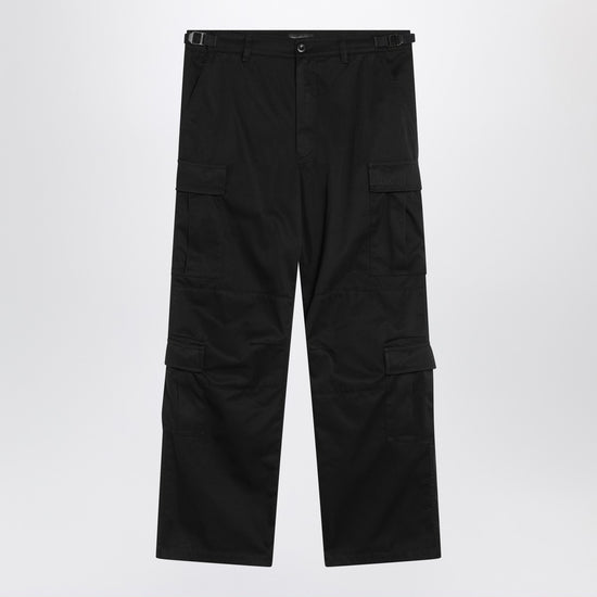 Balenciaga cargo pants in black cotton blend, characterized by a front closure with zip and button, belt loops, two welt pockets, four applied cargo pockets with flap, one of which has tone-on-tone logo lettering, and two back pockets with flap. size and fit - model wears size s model measurements: height: 179 cm chest: 82 cm waist: 65 cm hips: 90 cm