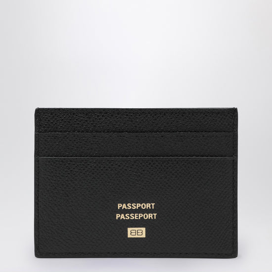 Balenciaga black leather cardholder, featuring an embossed logo on the front, four card slots, and a bill pocket. size and fit - width 10 cm x height 9 cm x depth 1 cm