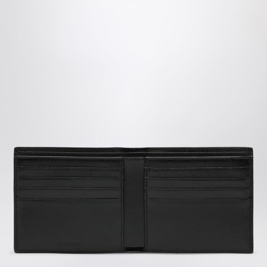 Balenciaga arena black leather wallet, featuring printed stickers, balenciaga logo printed on the front, eight card slots, two banknote pockets, and two receipt compartments. size and fit - width 11 cm x height 9 cm x depth 2,5 cm