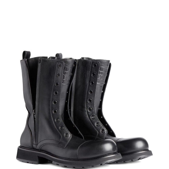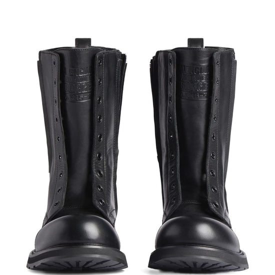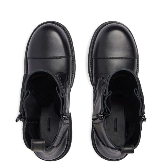 Black leather zip closure round toe pull tab truck leather boots size and fit - heel 2,5 cm