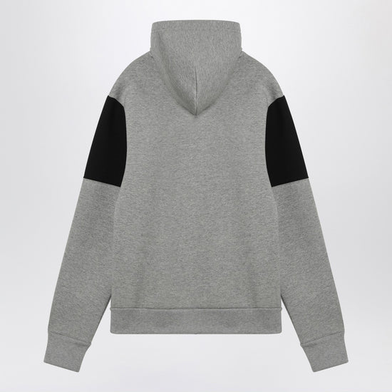 Balenciaga hooded sweatshirt in grey and black brushed cotton, featuring long sleeves, front closure with double zip, logo on the chest, two front pockets, and ribbed edges. size and fit - model wears size l model measurements: height: 185 cm chest: 105 cm waist: 85 cm hips: 100 cm