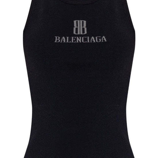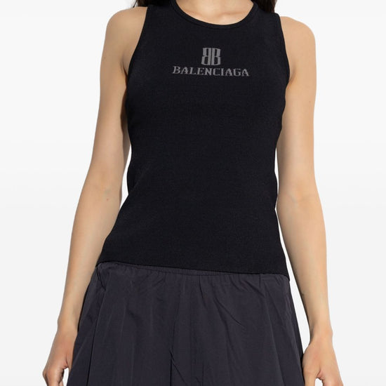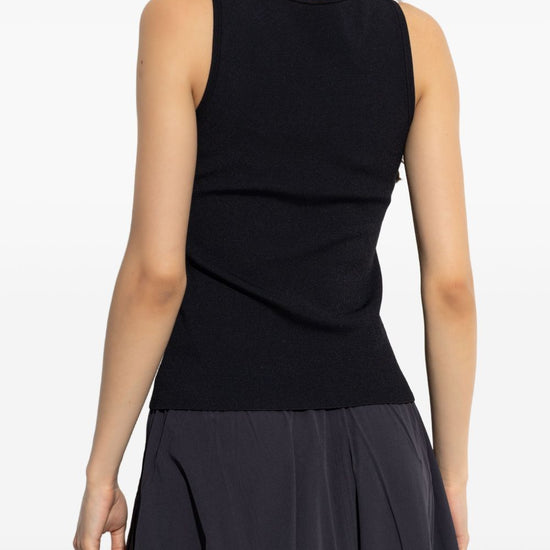 Black intarsia-knit logo crew neck sleeveless straight hem logo tank top
