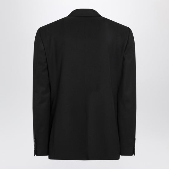 Single-breasted jacket by balenciaga in black wool, featuring classic lapels, long sleeves with buttoned cuffs, one chest welt pocket, two front flap pockets, front closure, and back slit. size and fit - model wears size 36 fr model measurements: height: 182 cm chest: 79 cm waist: 62 cm hips: 90 cm