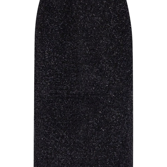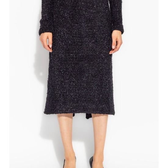 Black cotton blend tweed rear zip fastening rear slit straight hem mid-length tweed midi skirt