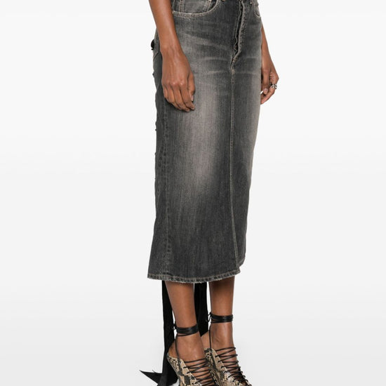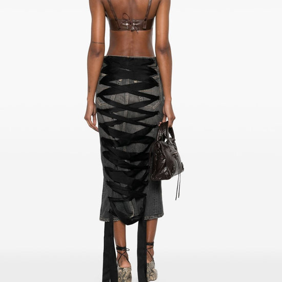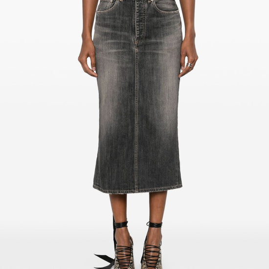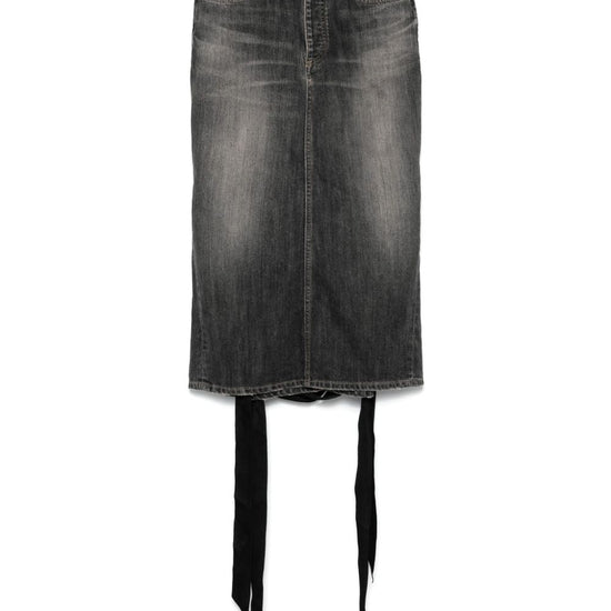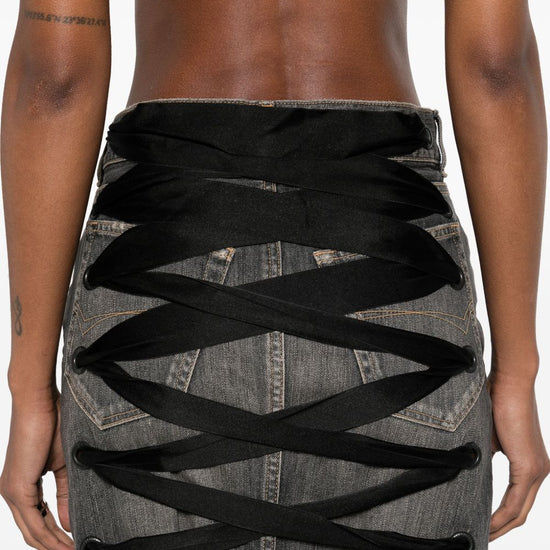 Anthracite grey concealed fly and button fastening classic five pockets rear slit lace-up detailing lace-up denim skirt size and fit - this piece fits true to size. we recommend you get your regular size. model is 1,75m / 5ft 8in wearing size 36 (fr)