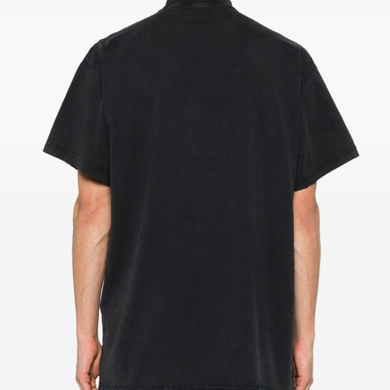 Black crew neck short sleeves distressed effect when buying this unisex item, keep in mind that it is graded in standard men's sizing. 3b liquified cotton t-shirt size and fit - this piece fits true to size. we recommend you get your regular size. model is 1,84m / 6ft 1in wearing size 2 (num)